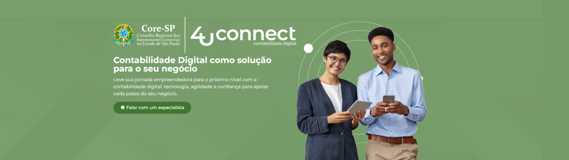 Representantes Comerciais com registro regular no Core-SP, tem condições especiais e atendimento 100% personalizado na contratação de serviços de contabilidade com a 4U Connect.