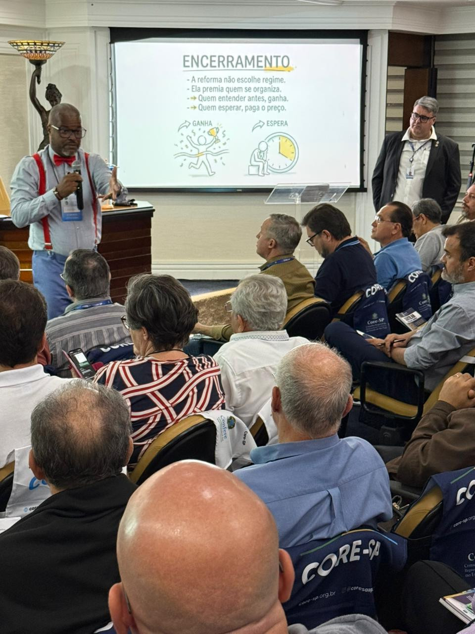Na tarde de ontem, quarta-feira (15), o auditório Willian Lei, na Sede do Core-SP, recebeu representantes comerciais para a palestra sobre a reforma tributária.