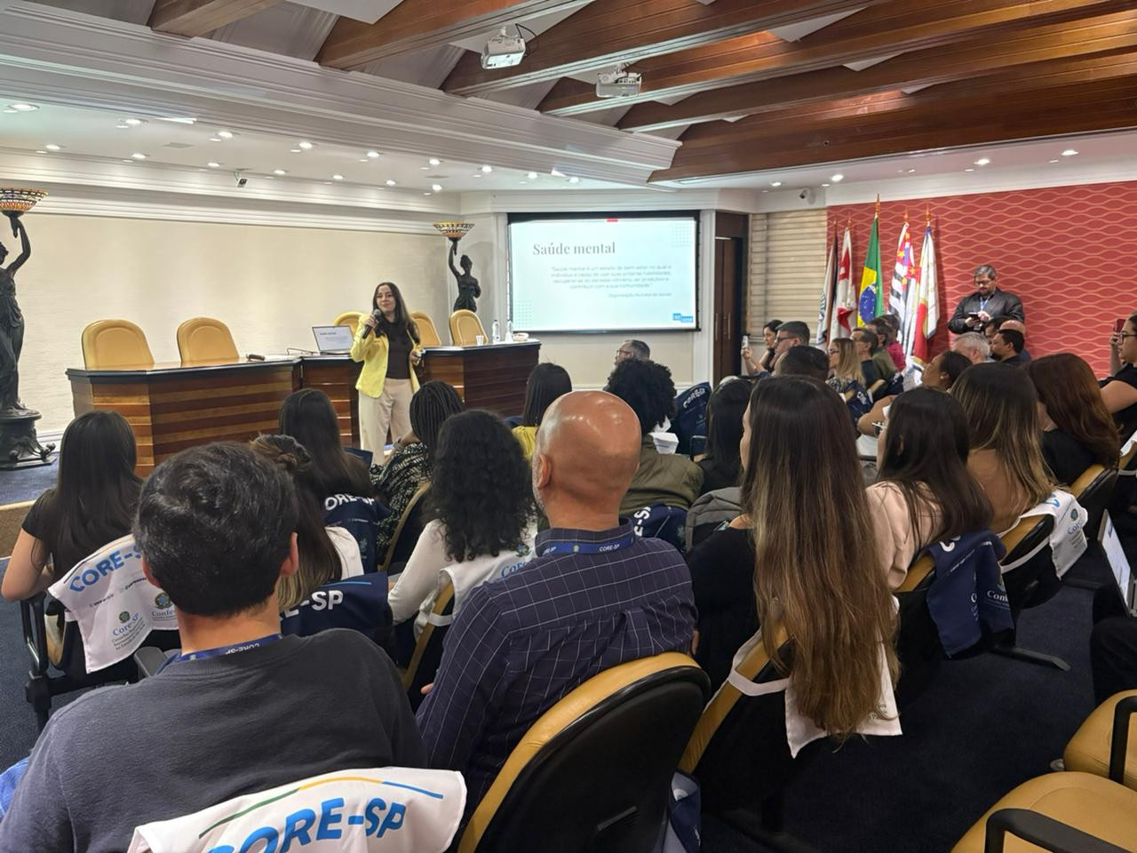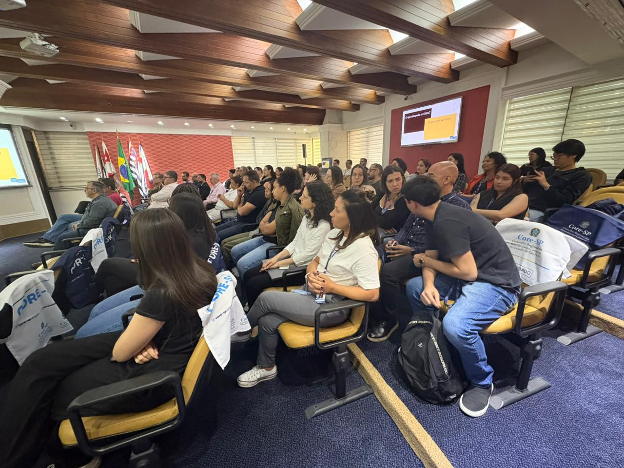O evento sobre Saúde Mental no Ambiente de Trabalho, promovido pelo Core-SP, contou com a participação ativa dos colaboradores, seja de forma presencial ou remota, acompanhando com interesse e engajamento. Excetuando-se os casos previamente justificados, todos os setores estiveram representados, demonstrando o compromisso institucional com o bem-estar e a valorização da saúde emocional no ambiente profissional.